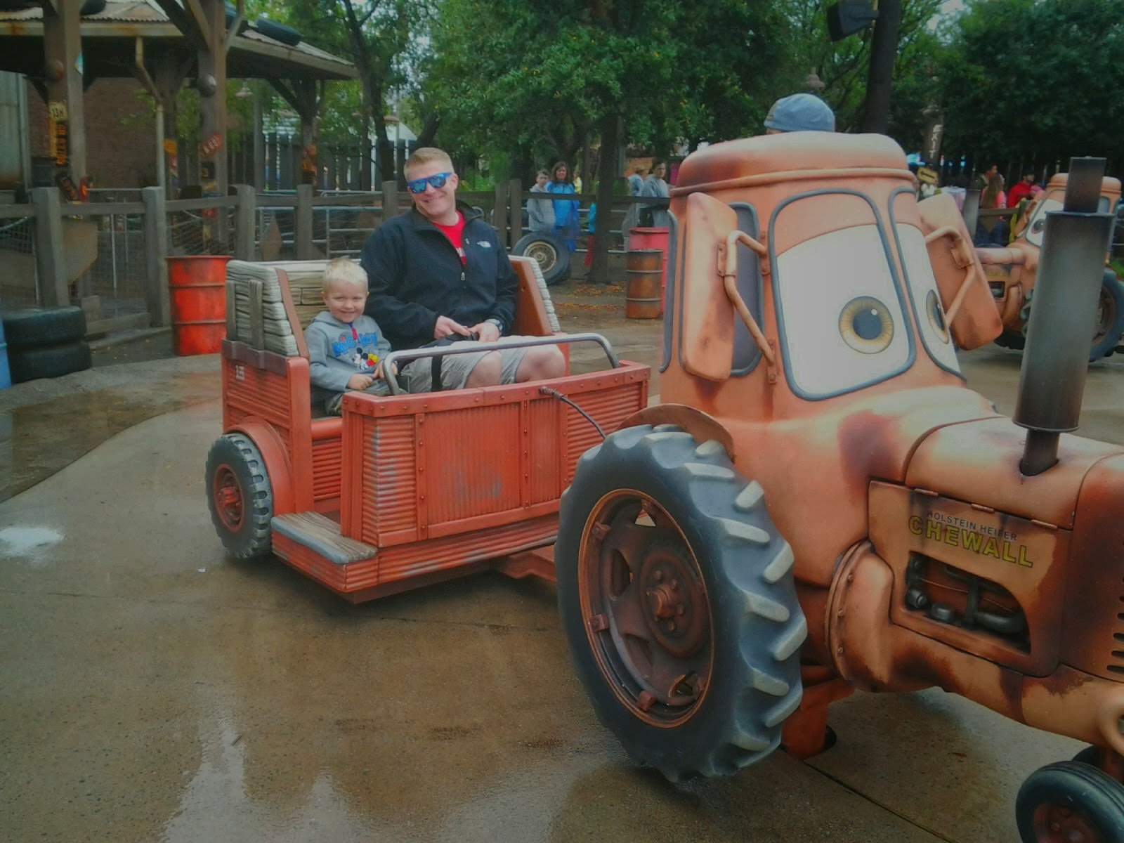 | William was freaked out with the life size Mater that moved and talked, so he isn't in the picture. |